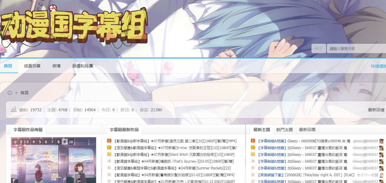 动漫国字幕组看这个网站名称就知道了,这是一个提供动漫字幕的网站,准确的说是一个论坛吧。这个网站主要以翻译日漫为主。