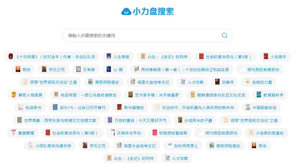 打开小力盘,正中间就是一个LOGO,下面就是输入框,你可以在这里输入书名,输入框的下面是推荐的一些热门图书,把鼠标移动到书名左侧的小图标,会弹出电子书的封面,这点很有意思。
